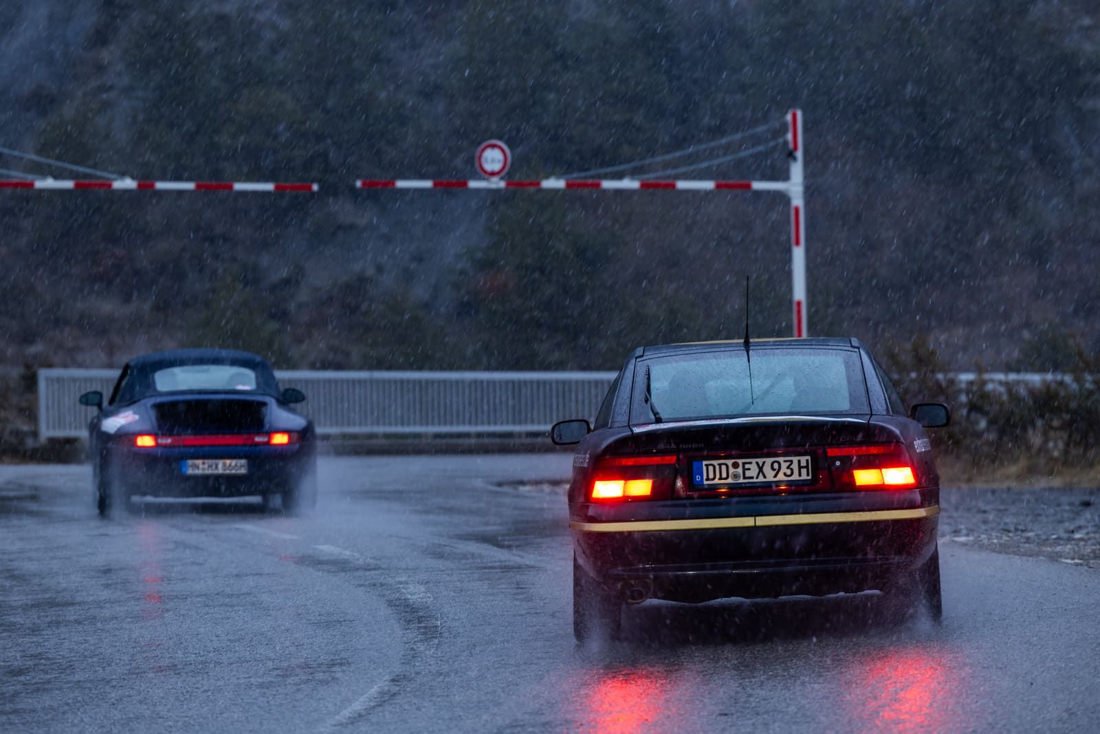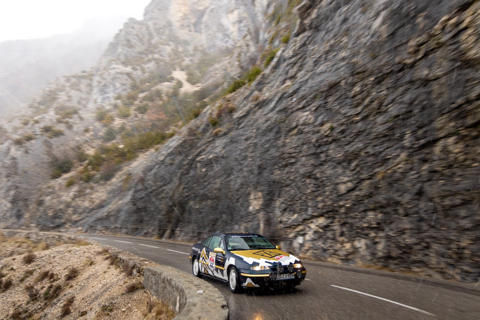 Der Youngtimer bewies auf der gesamten Strecke Standfestigkeit. Keine technischen Ausfälle, keine improvisierten Reparaturen am Straßenrand. Während andere Teams mit Zündspulen oder Verteilerkappen kämpften, lief der Calibra zuverlässig durch selbst auf verschneiten Passstraßen Richtung Col du Lautaret.